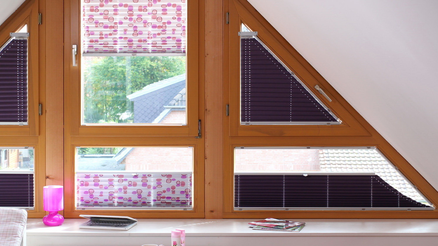 Для окон сложных форм и мансардных окон лучшее решение это шторы плиссе.
