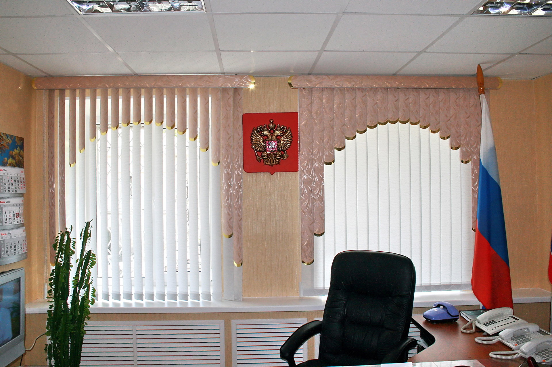 Вертикальные жалюзи хорошо подойдут для больших окон, офисных кабинетов и помещений различных учреждений.